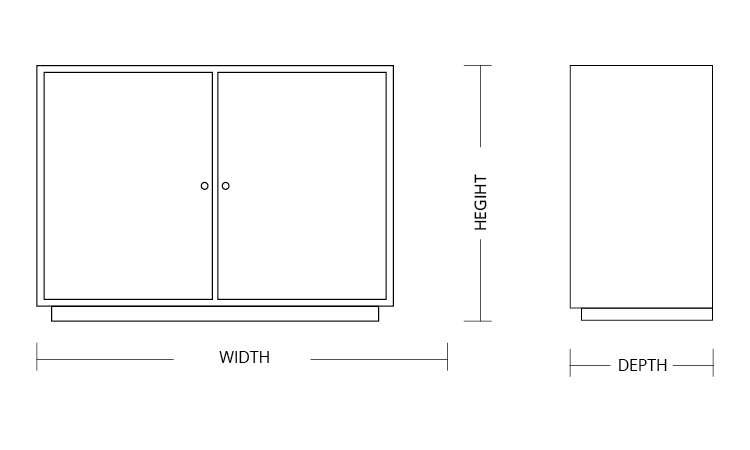 Cabinet Type Height Width Depth Standard 34.75″ 60″ 16″ With Swiveling Mechanism 34.75″ 60″ 20″ With Casters 34.75″ 60″ 20″ -