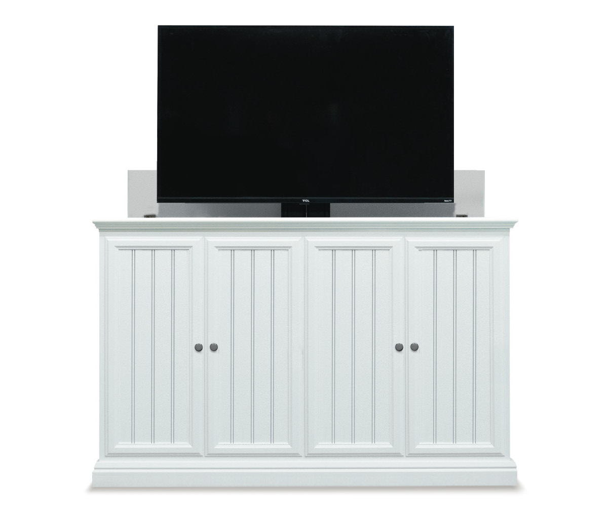 The Lindon style is one of our favorites. It is a stunning transitional design that combines transcendent traditional elements like ogee edges and pencil molding with the modern-farmhouse look of bead-board. Because of this, the Lindon will truly never go out of style. Sophisticated, but not stuffy. Traditional, but not out-dated. The Basic TV Lift Cabinet is built from lumber sustainably harvested in the North West USA and built in St. George, UT.