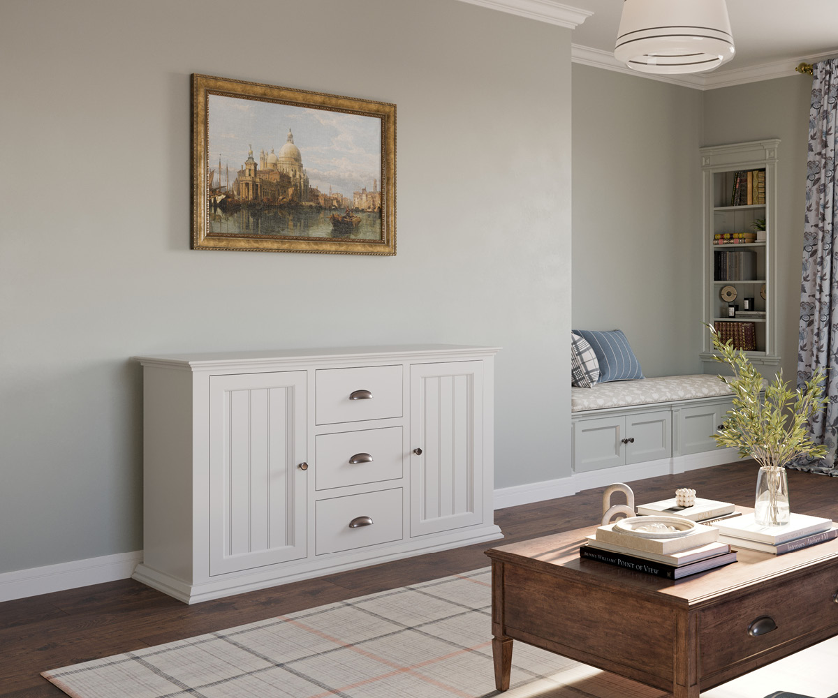The Lindon style is one of our favorites. It is a stunning transitional design that combines transcendent traditional elements like ogee edges and pencil molding with the modern-farmhouse look of bead-board. Because of this, the Lindon will truly never go out of style. Sophisticated, but not stuffy. Traditional, but not out-dated. The Basic TV Lift Cabinet is built from lumber sustainably harvested in the North West USA and built in St. George, UT.